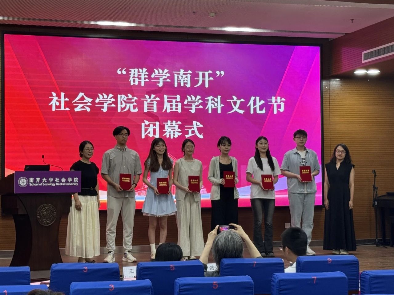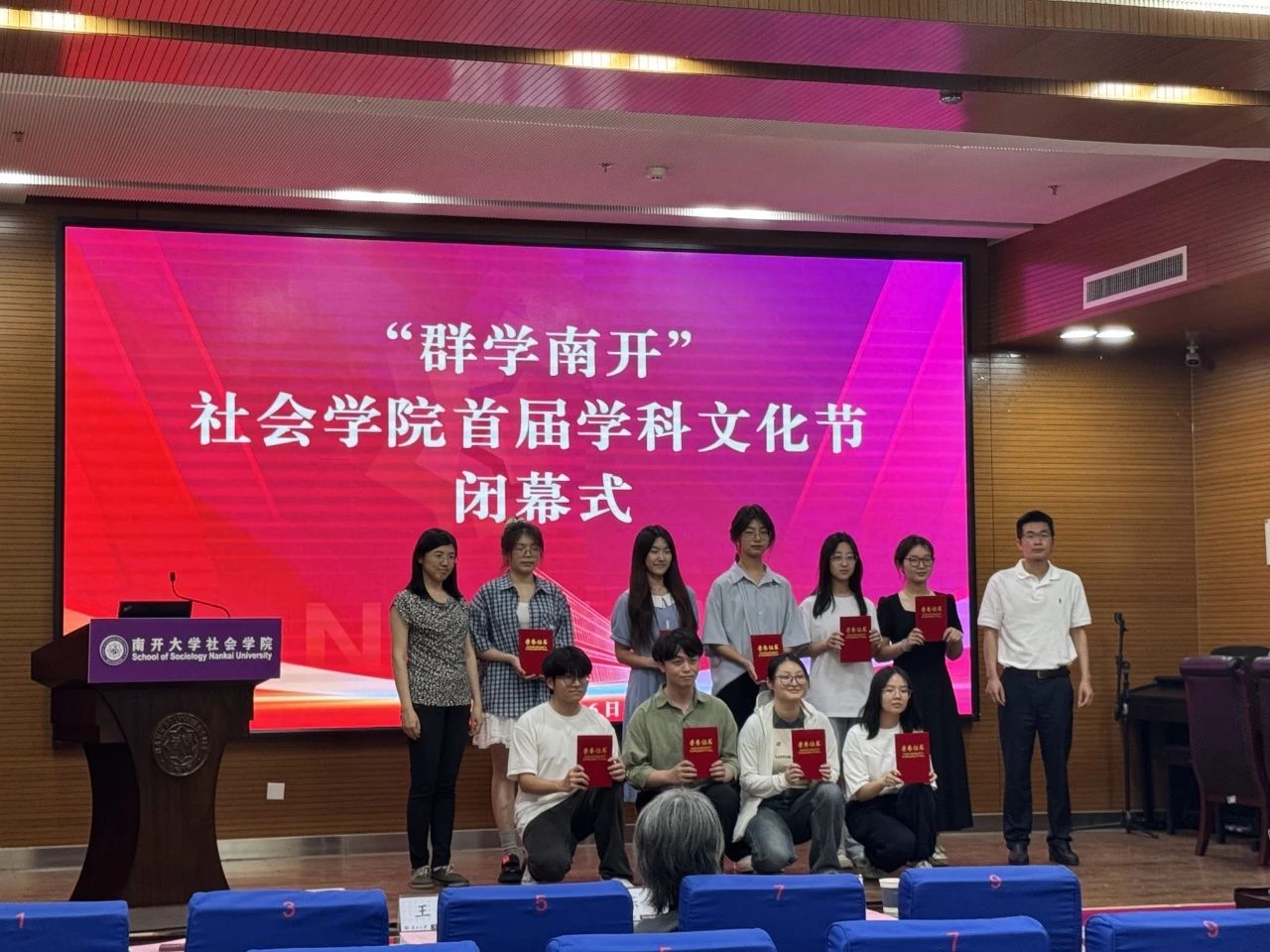 闭幕式上,首先回顾了本届学科文化节开展的系列活动。在历时一个月的文化节中,天游线路测速登录中心开展了社会学类知识竞赛、社会工作实务案例大赛、社工专业脱口秀、心理小诗征集、心理运动会、群学主题荧光夜跑、劳动教育实践以及社会实践双选会等一系列活动。首届“群学南开”学科文化节得到了学院师生的积极响应,同学们在理论知识学习中碰撞思维火花,在社会实务深耕中感悟社会现实,从专业出发关照社会现实,积极上好了一堂生动的“大思政课”。